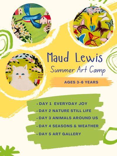 Join us for a warm and creative summer camp inspired by the beautiful world of Maud Lewis. Through her colourful paintings of butterflies, the sea, and peaceful countryside scenes, children will explore the changing seasons in Nova Scotia in a bright and child-friendly way.